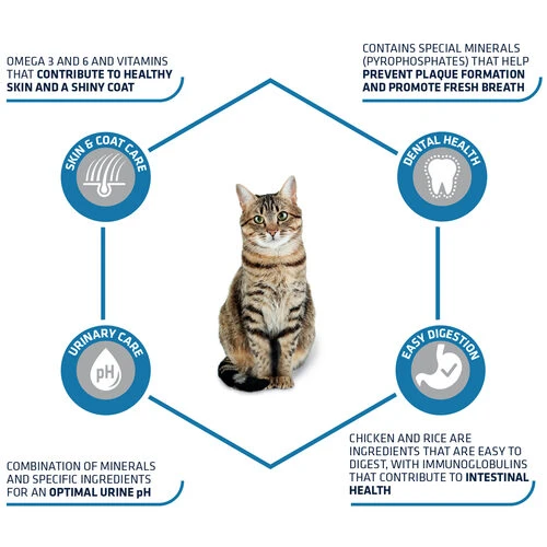Advance Adult Huhn und Reis unterstĂĽtzt das Immunsystem der Katze und sorgt dank des leicht verdaulichen Huhns und Reises fĂĽr eine gute Darmfunktion. Omega 3 und 6 tragen zur Erhaltung einer gesunden Haut und eines gesunden Fells bei. Spezielle Mineralien helfen, Plaque zu verhindern. Sehr wirksam sind auch die Mineralien und Inhaltsstoffe, die zu einem optimalen pH-Wert im Urin beitragen.