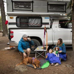Ruffwear Knot-a-Hitch ist ein neues Befestigungssystem, das aus einem starken Kernmantelseil besteht. Mithilfe von diesem System kann Ihr Hund beim Kampieren freier herumlaufen, während er an einem Seil sicher angeleint ist. So kann Ihr Hund die Gegend erkunden, derweil Sie mit dem Aufbauen von einem Zelt oder dem Zubereiten des Essens beschäftigt sind.