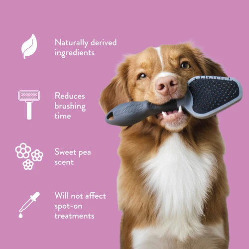 Tropiclean – Tangle Remover ist ein Spray, das nicht ausgespült werden muss. Das Spray wirkt schmutzabweisend und erleichtert das Bürsten Ihres Hundes. Das Spray dringt in die Verfilzungen im Fell Ihres Hundes ein. Das Spray hilft auch, die Unterwolle und die Elastizität des Fells wiederherzustellen. Darüber hinaus kann das Spray auch zu einem gesunden Glanz beitragen.